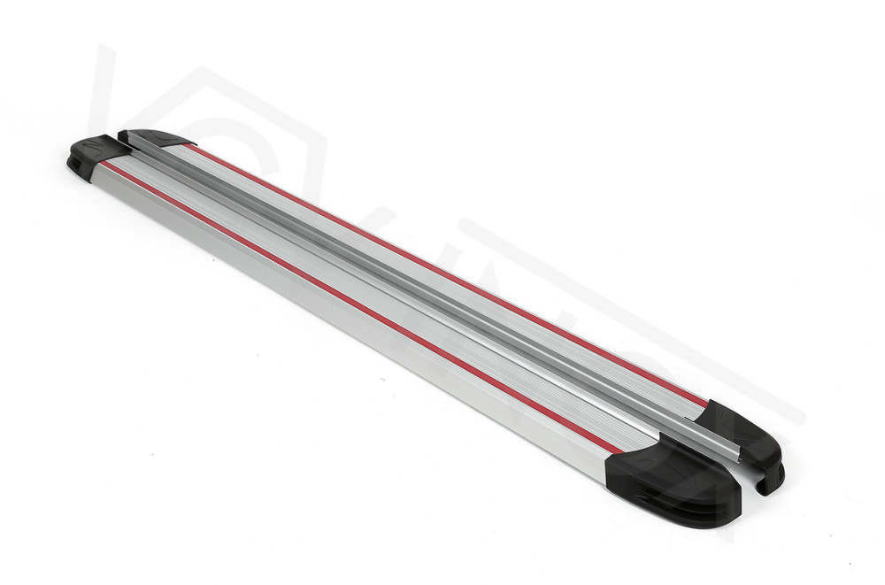 De MGR-LINE treeplanken van VGV INOX zijn grijze aluminium planken met rode sierlijn van ABS kunststof. Uiteinden van de treeplanken zijn met ABS kunststof afgewerkt.