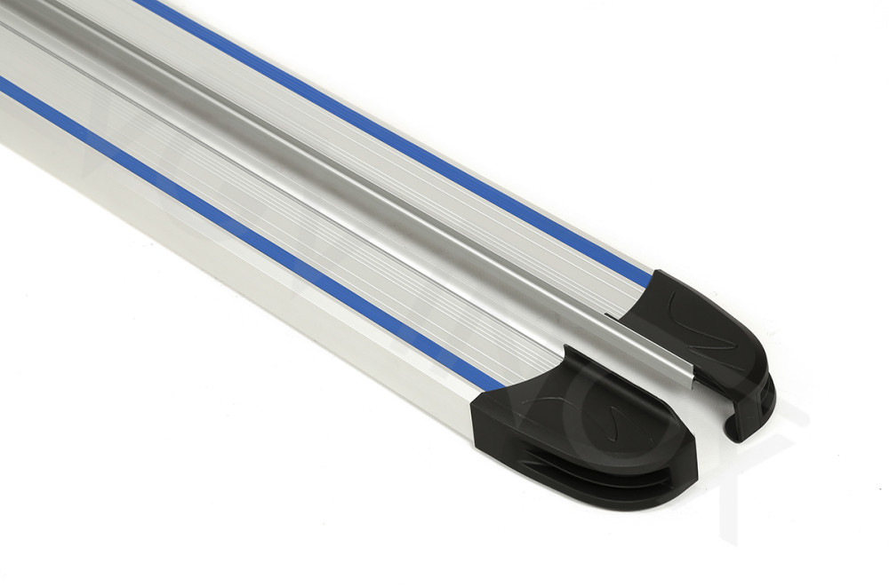 De MGM-LINE treeplanken van VGV INOX zijn grijze aluminium planken met blauwe sierlijn van ABS kunststof. Uiteinden van de treeplanken zijn met ABS kunststof afgewerkt.