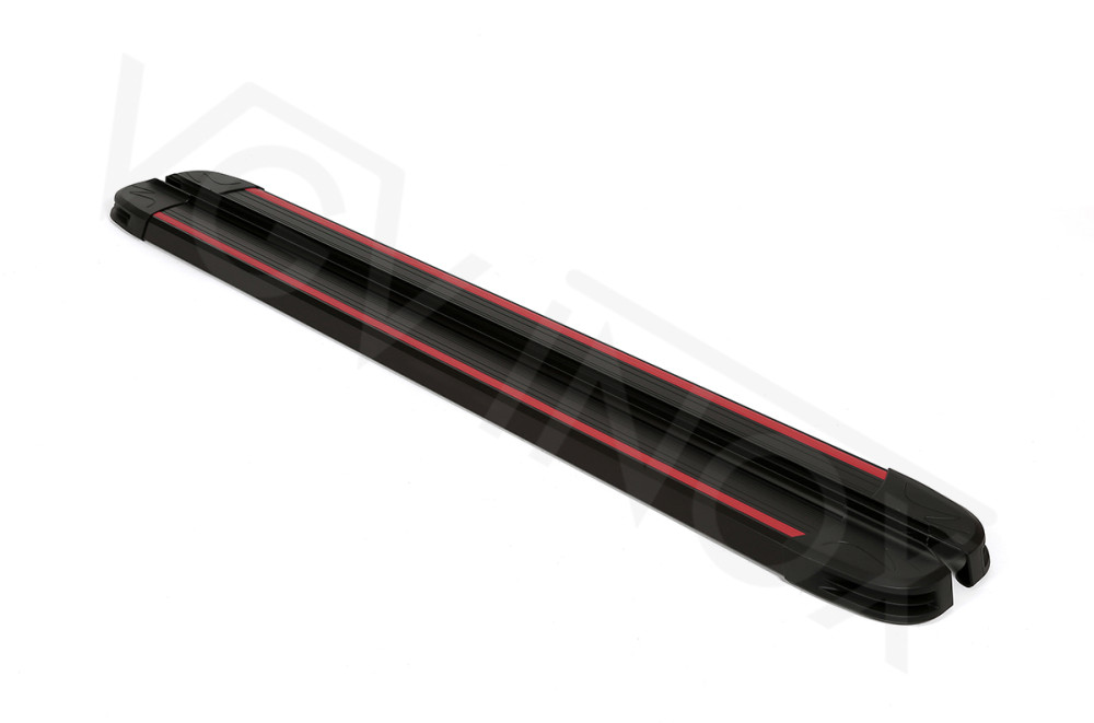 De MBR-LINE treeplanken van VGV INOX zijn zwarte aluminium planken met rode sierlijn van ABS kunststof. Uiteinden van de treeplanken zijn met ABS kunststof afgewerkt.