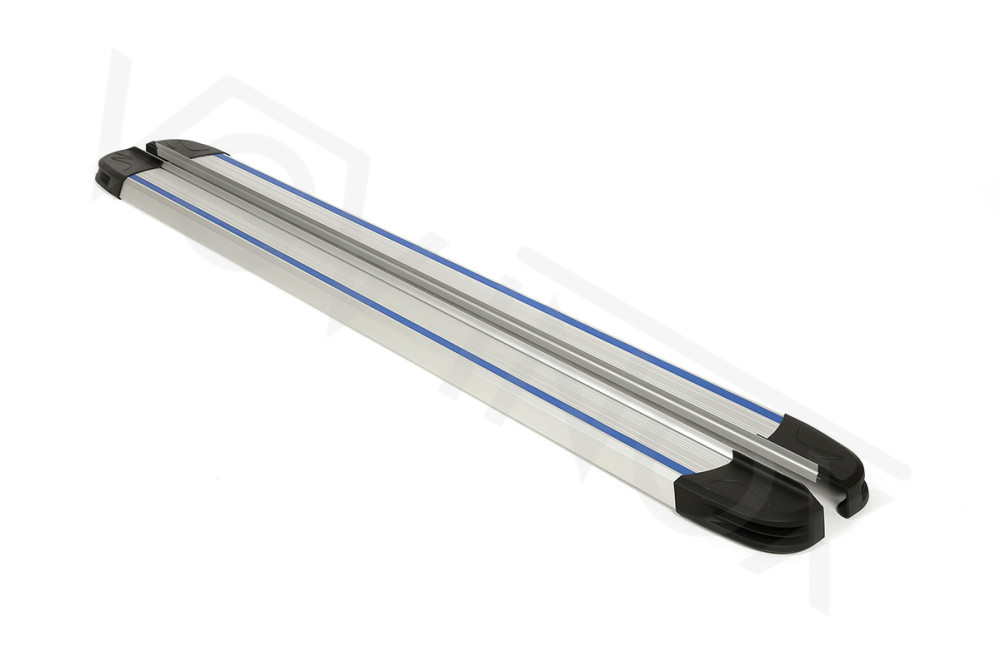 De MGM-LINE treeplanken van VGV INOX zijn grijze aluminium planken met blauwe sierlijn van ABS kunststof. Uiteinden van de treeplanken zijn met ABS kunststof afgewerkt.