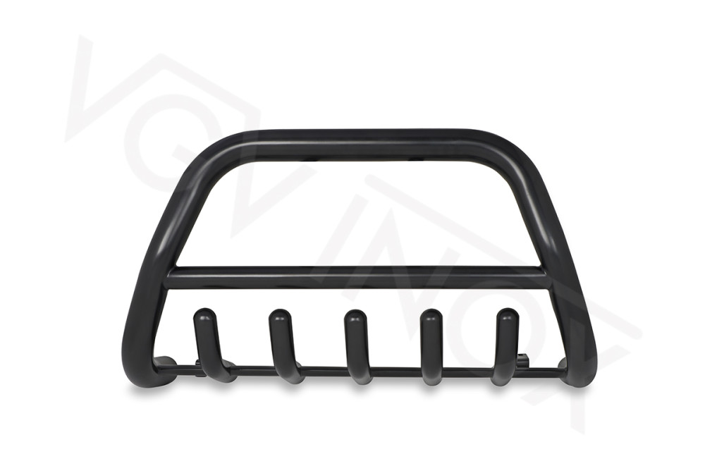 Pushbars van VGV INOX hebben een uniek design. Ze bieden naast een geweldig uiterlijk ook een solide bescherming tegen dure schadevorming bij lichte aanrijdingen aan de voorkant van uw voertuig. Deze Pushbars zijn gemaakt van duurzaam RVS 304 vervolgens mat zwart afgewerkt welk een diameter heeft van 70mm en een wanddikte van 1,8mm. Tevens krijgt u bij dit product 10 jaar garantie op roest. Lees de FAQ voor de voorwaarden.