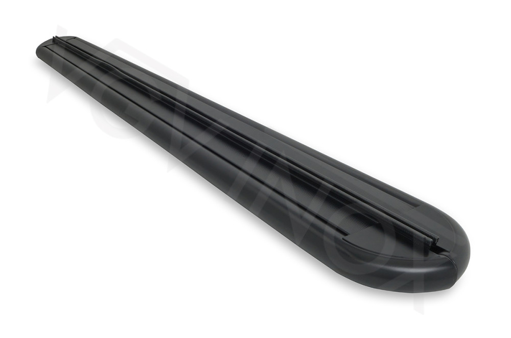 De sidebars van VGV INOX zijn mat zwat afgewerkt welk aan het begin en uiteinde horizontaal naar de dorpel gebogen zijn en met een luxueus traanplaat boven dicht afwerkt zijn. Uiteinden van de sidebars zijn volledig dichtgelast en vakkundig afgewerkt. Door middel van ovale sleufgaten kunt u tijdens de bevestiging de afstand van de sidebars zelf bepalen ten opzichte van uw voertuig.
