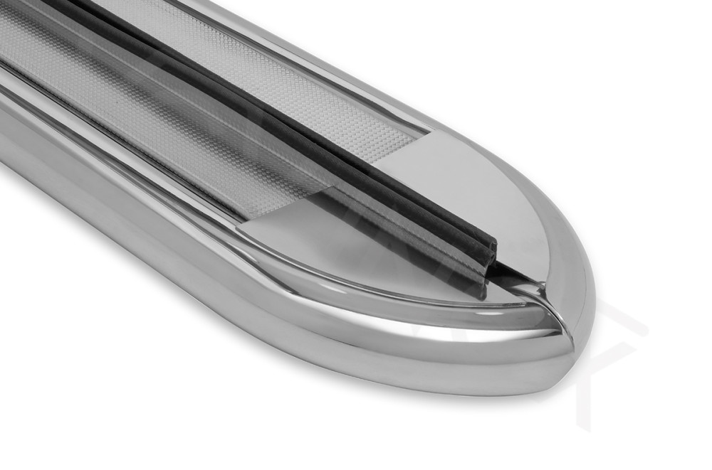 De sidebars van VGV INOX zijn gepolijst welk aan het begin en uiteinde horizontaal naar de dorpel gebogen zijn en met een luxueus traanplaat boven dicht afwerkt zijn. Uiteinden van de sidebars zijn volledig dichtgelast en vakkundig afgewerkt. Door middel van ovale sleufgaten kunt u tijdens de bevestiging de afstand van de sidebars zelf bepalen ten opzichte van uw voertuig.