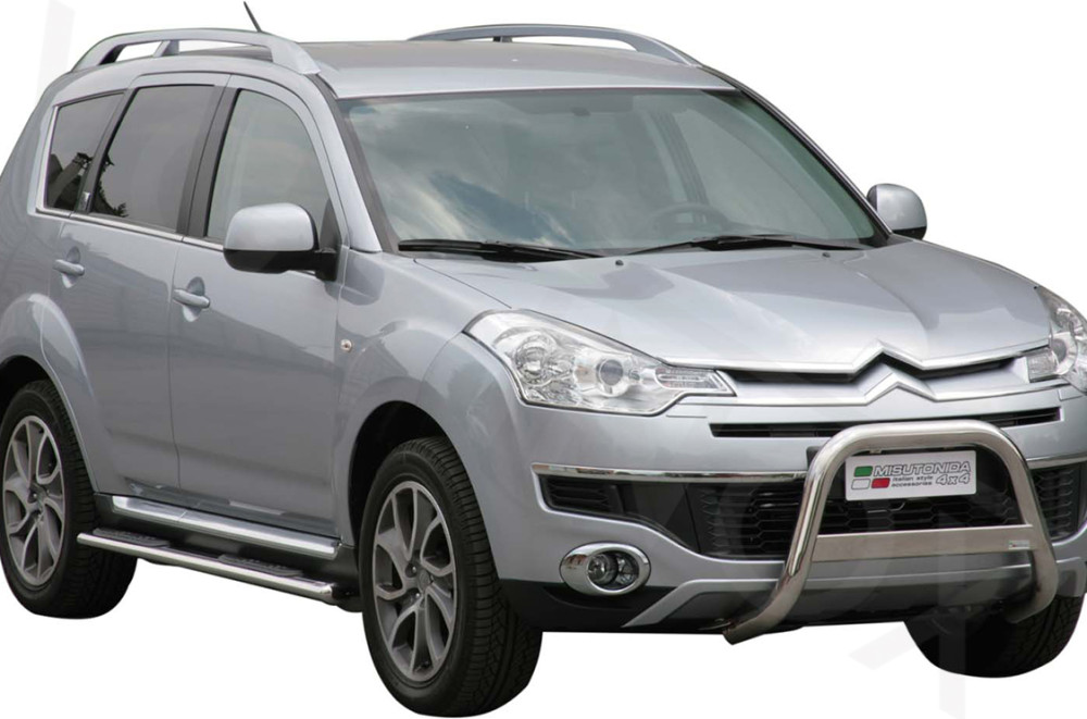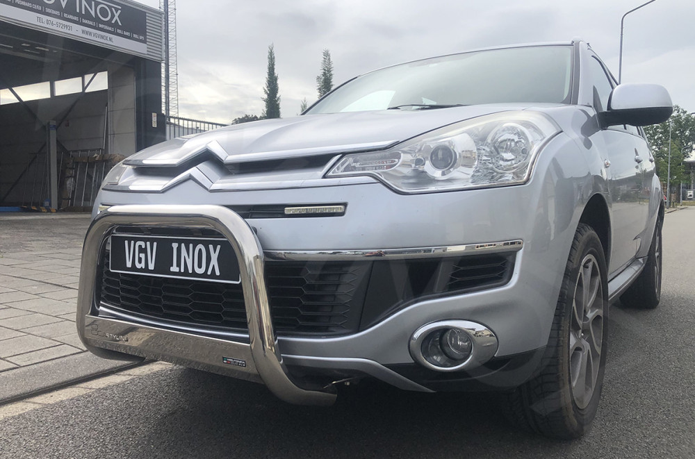 CITROEN C-CROSSER 2007 - 2012 PUSHBAR MET SKIDPLATE RVS GLANS INCLUSIEF EU-EC CERTIFICAAT