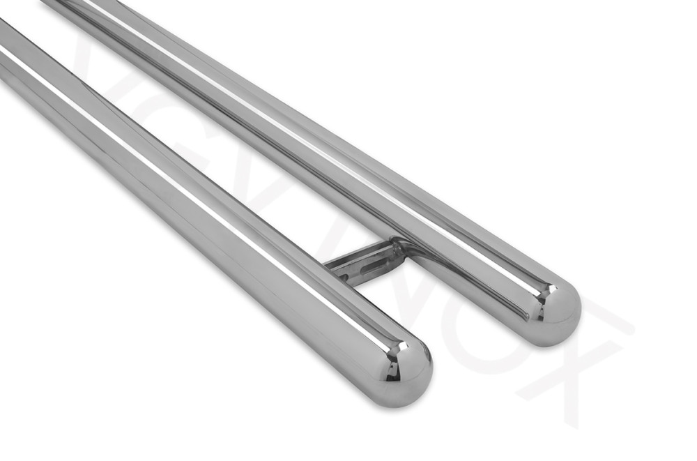 De sidebars van VGV INOX zijn gepolijste rechte buizen. Uiteinden van de sidebars zijn volledig dichtgelast en vakkundig afgewerkt. Door middel van ovale sleufgaten kunt u tijdens de bevestiging de afstand van de sidebars zelf bepalen ten opzichte van uw voertuig.