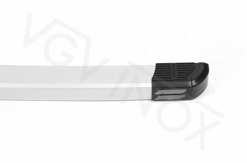 Rearbars van VGV INOX hebben een uniek design. Ze bieden naast een geweldig uiterlijk ook een bescherming tegen dure schadevorming bij lichte aanrijdingen aan de achterkant van uw voertuig. Deze MG-LINE rearbar is gemaakt van geanodiseerd aluminium waardoor een oxidehuid op de aluminium plaats vindt als beschermende coating en met zwarte ABS kunststof uiteinden met witte reflectors. Dit product is te combineren met de VGV INOX AG-LINE treeplanken. Tevens krijgt u bij dit product 2 jaar garantie. Lees de FAQ voor de voorwaarden.