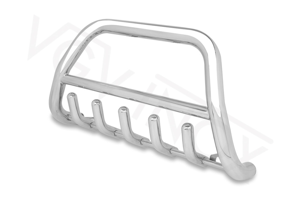 Pushbars van VGV INOX hebben een uniek design. Ze bieden naast een geweldig uiterlijk ook een solide bescherming tegen dure schadevorming bij lichte aanrijdingen aan de voorkant van uw voertuig. Deze Pushbars zijn gemaakt van duurzaam RVS 304 gepolijst buis welk een diameter heeft van 60mm en een wanddikte van 1,8mm. Tevens krijgt u bij dit product 10 jaar garantie op roest. Lees de FAQ voor de voorwaarden.