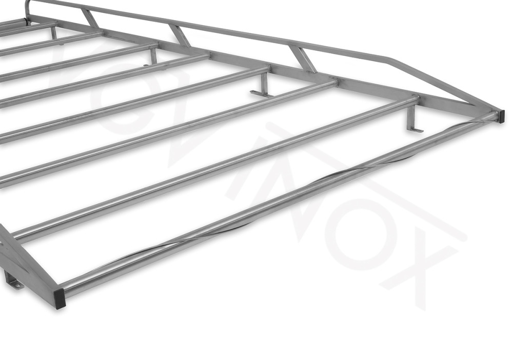 Imperiaal van VGV INOX hebben een uniek design en zijn van hoogwaardig RVS 304 op maat gemaakt voor uw voertuig. Standaard worden al onze imperialen met RVS windgeleider en ladderrol geleverd. De windgeleider wordt om de voorste buis gedraaid en vervolgens gelast. Zijkanten van de imperiaal is een open frame waardoor het makkelijk vastzetten van ladingen gerealiseerd kan worden. Tevens krijgt u bij dit product 5 jaar garantie op roest. Lees de FAQ voor de voorwaarden.