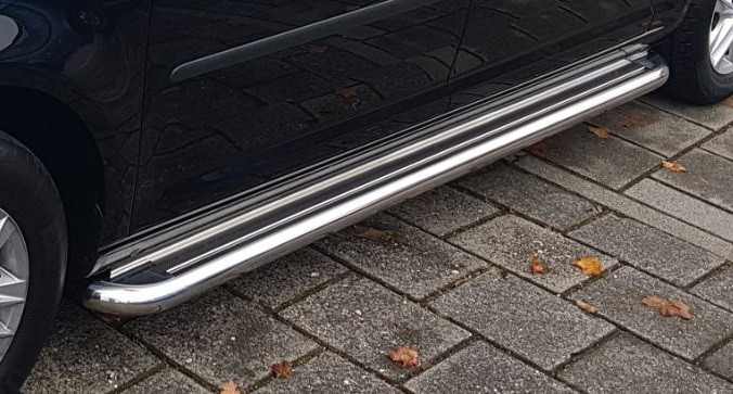 De sidebars van VGV INOX zijn gepolijst welk aan het begin en uiteinde horizontaal naar de dorpel gebogen zijn en met een luxueus traanplaat boven dicht afwerkt zijn. Uiteinden van de sidebars zijn volledig dichtgelast en vakkundig afgewerkt. Door middel van ovale sleufgaten kunt u tijdens de bevestiging de afstand van de sidebars zelf bepalen ten opzichte van uw voertuig.