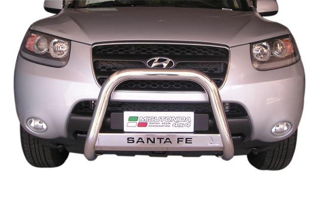 Hyundai Santa Fe 2006 - 2012 pushbar met skidplate met santa fe tekst rvs inclusief CE-EU Certificaat