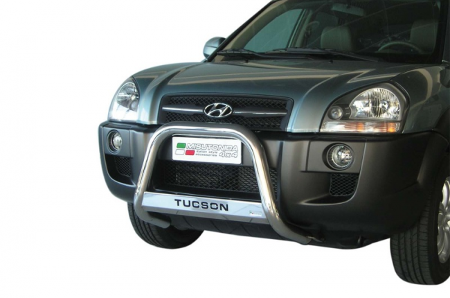 Hyundai Tucson 2004 - 2014 pushbar met skidplate met tucson tekst rvs inclusief CE-EU Certificaat