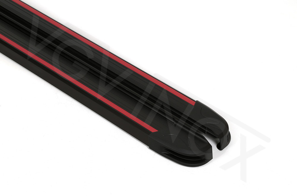 De MBR-LINE treeplanken van VGV INOX zijn zwarte aluminium planken met rode sierlijn van ABS kunststof. Uiteinden van de treeplanken zijn met ABS kunststof afgewerkt.