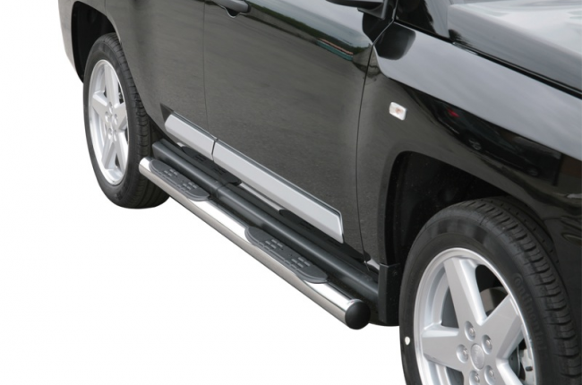 Jeep Compass 2006 - 2011 sidebars ronde buis 76 mm met zwarte steps