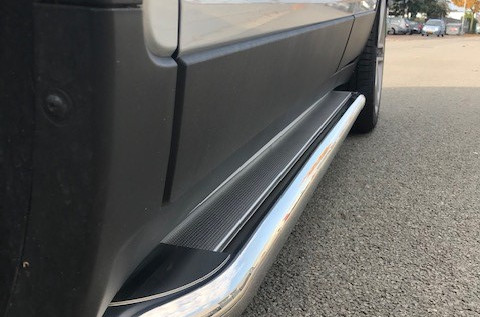 De sidebars van VGV INOX zijn gepolijst welk aan het begin en uiteinde horizontaal naar de dorpel gebogen zijn en met een luxueus traanplaat boven dicht afwerkt zijn. Uiteinden van de sidebars zijn volledig dichtgelast en vakkundig afgewerkt. Door middel van ovale sleufgaten kunt u tijdens de bevestiging de afstand van de sidebars zelf bepalen ten opzichte van uw voertuig.