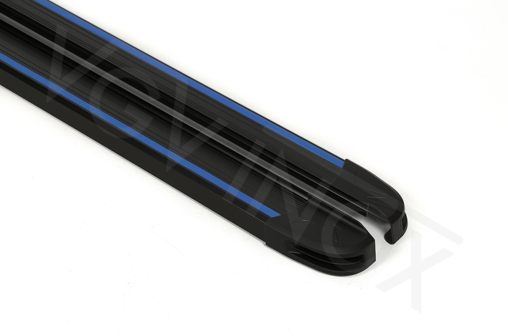 De MBM-LINE treeplanken van VGV INOX zijn zwarte aluminium planken met blauwe sierlijn van ABS kunststof. Uiteinden van de treeplanken zijn met ABS kunststof afgewerkt.