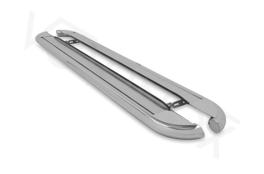 De sidebars van VGV INOX zijn gepolijst welk aan het begin en uiteinde horizontaal naar de dorpel gebogen zijn en met een luxueus traanplaat boven dicht afwerkt zijn. Uiteinden van de sidebars zijn volledig dichtgelast en vakkundig afgewerkt. Door middel van ovale sleufgaten kunt u tijdens de bevestiging de afstand van de sidebars zelf bepalen ten opzichte van uw voertuig.