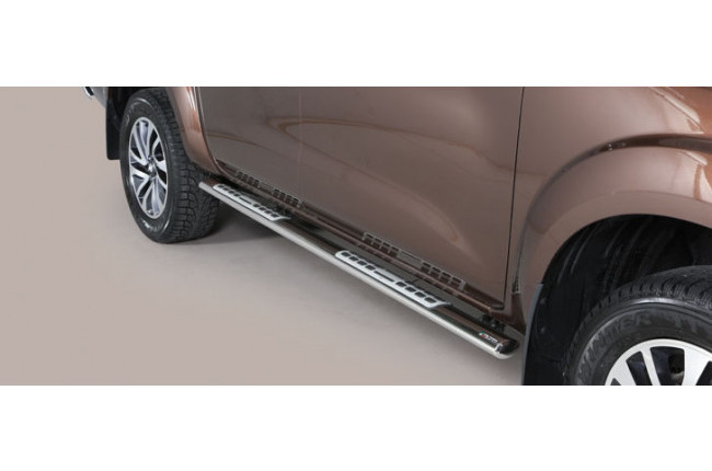 Nissan Navara 2016 - heden sidebars ovale buis met grijze steps voor DubbelCab meer informatie