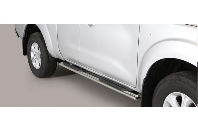 Nissan Navara 2016 - heden sidebars ovale buis met zwarte steps voor KingCab meer informatie