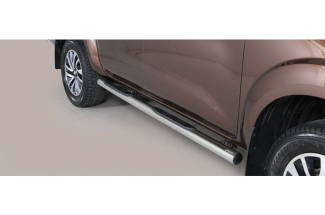 Nissan Navara 2016 - heden sidebars ronde buis 76 mm met zwarte steps voor DubbelCab meer informatie