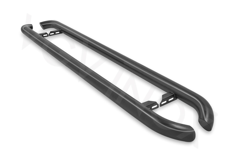 De sidebars van VGV INOX zijn mat zwart en zijn aan het begin en uiteinde diagonaal naar de dorpel gebogen. Uiteinden van de sidebars zijn volledig dichtgelast en vakkundig afgewerkt. Door middel van ovale sleufgaten kunt u tijdens de bevestiging de afstand van de sidebars zelf bepalen ten opzichte van uw voertuig.