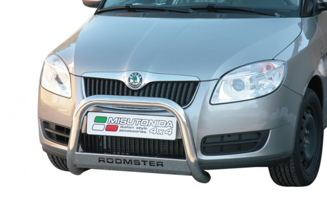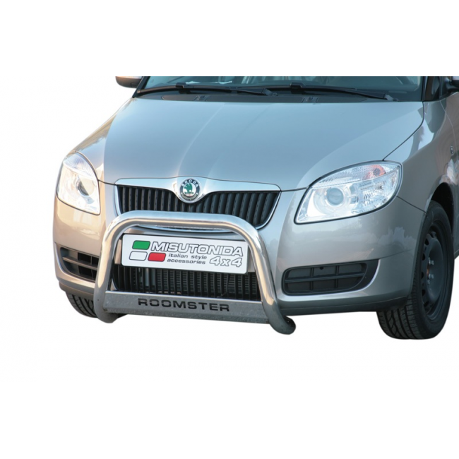 Skoda Roomster 2007 - 2010 pushbar met skidplate met roomster tekst rvs