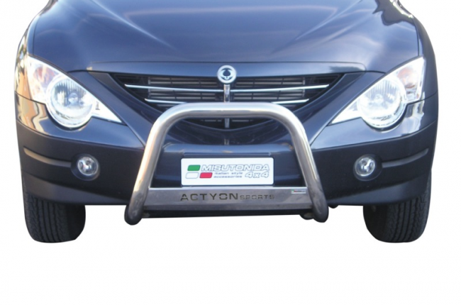 Ssangyong Actyon sports 2007 - 2012 pushbar met skidplate met actyon sports tekst rvs inclusief CE-EU Certificaat