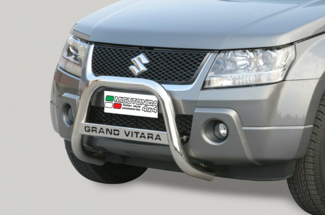 Suzuki Grand vitara 5 deurs 2005 - 2009 pushbar met skidplate met grand vitara tekst rvs inclusief CE-EU Certificaat