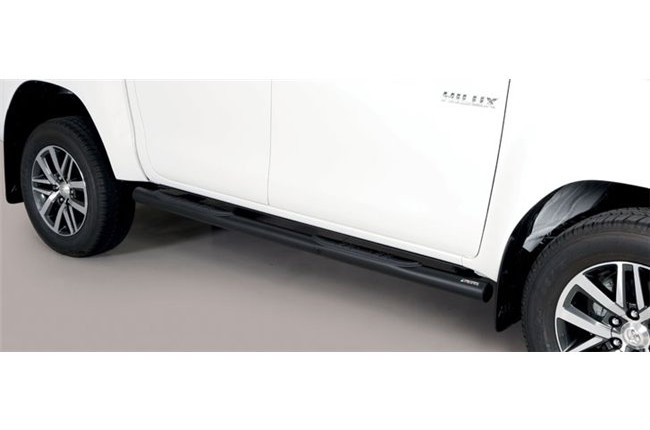 Toyota Hilux 2019 - heden zwarte sidebars ronde buis 76 mm met zwarte steps